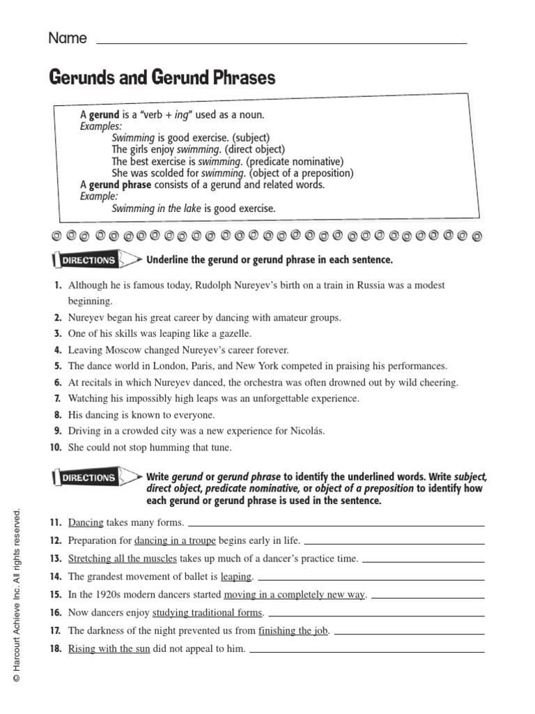 Gerund Phrase Worksheet With Answers Pdf