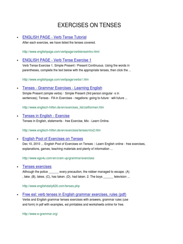 Exercises On Tenses Pdf English Language Grammatical Tense